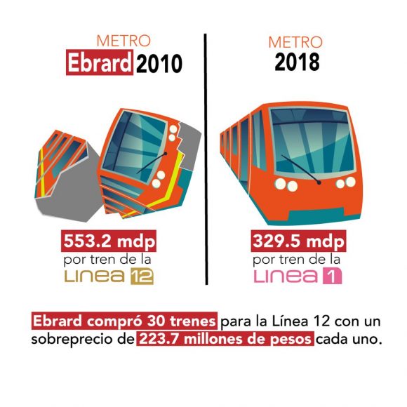 (Mismo que) es superior al 68% al costo unitario de los trenes neumáticos adquiridos para la Línea 1 durante la presente administración, ya que estos último costaron la cantidad de 329.5 millones de pesos.