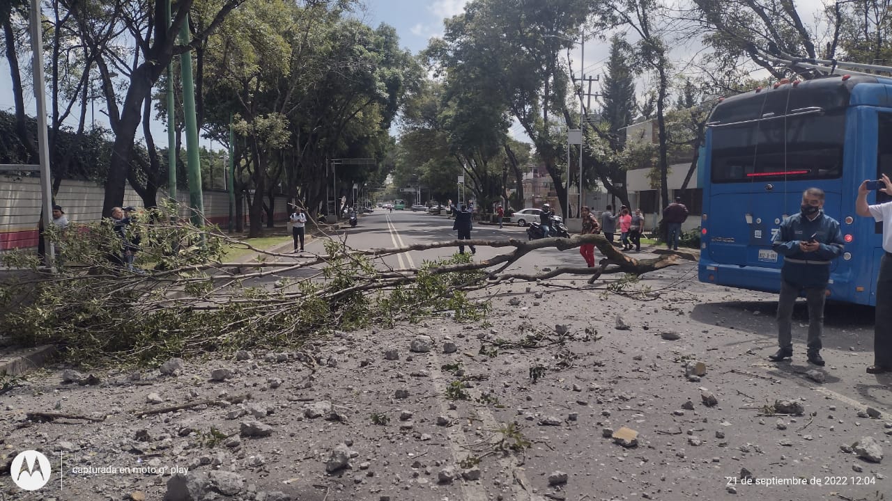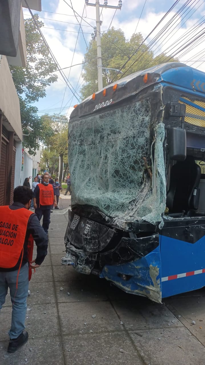 Frente al Museo de Transporte, un trolebús de color azul pierde el control, tira un árbol y la barda de división de un predio. En el sitio se presenta la unidad MX- 006- G 9. Los oficiales confirman la emergencia y solicitan apoyo médico y acordonan el lugar.