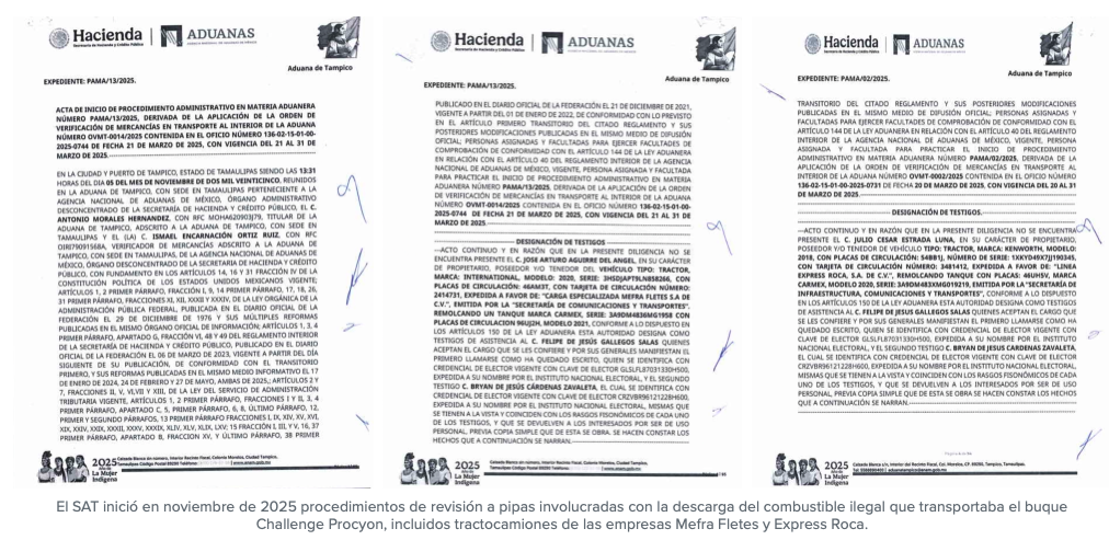 Documentos del SAT confirmaron que el buque Challenge Procyon que arribó a finales de marzo de 2025, al puerto de Tampico, traía más de 20 millones de litros de combustible ilegal y no los 10 millones de litros que las autoridades federales informaron haber decomisado en aquel “aseguramiento histórico”.