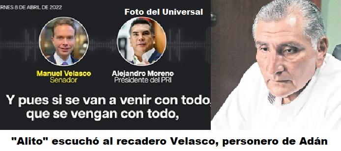En conferencia de prensa, el dirigente priista Alejandro Moreno Cárdenas, Alito, acusó al secretario de Gobernación, Adán Augusto López, de haberle enviado amenazas a través del senador Manuel Velasco Coello, amigo de ambos. El contenido en un audio de nueve minutos.