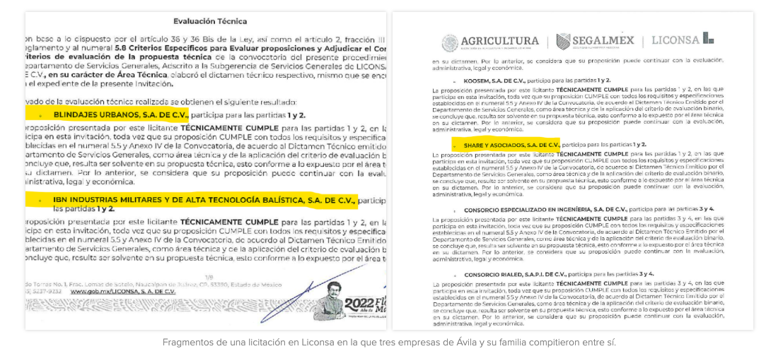 Ávila Anaya, actual vocero de los diputados federales de Morena, entró a trabajar a la Secretaría de Gobernación como director de enlace el 10 de octubre de 2022, y once días después de que se incorporó como funcionario, las empresas IBN Industrias Militares (que él fundó), Share y Asociados (en la que ha sido socio) y Blindajes Urbanos (fundada por su papá y dirigida por su hermana) presentaron propuestas en un procedimiento de contratación en Liconsa.