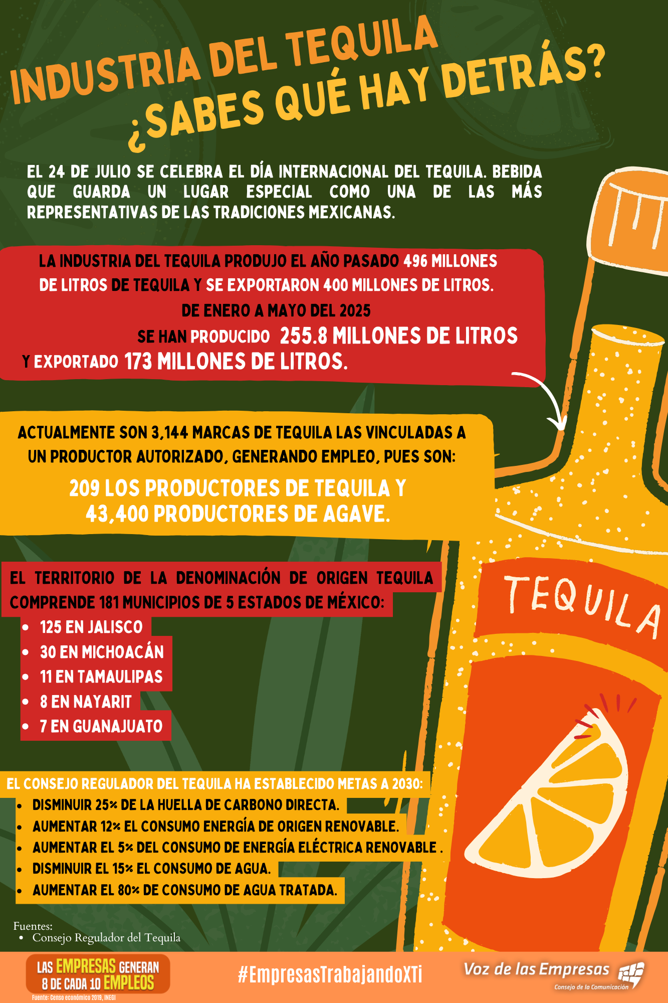 En lo que va del 2025, se han producido 255.8 millones de litros y exportado 173 millones de litros de tequila en México.