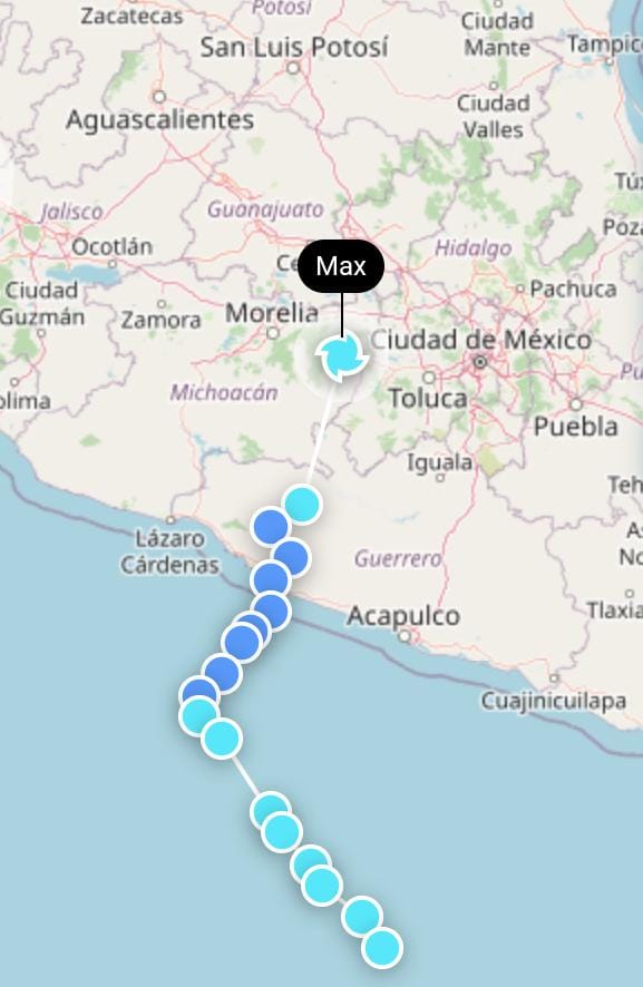 La tormenta tropical Max pasa por el centro del territorio nacional, por lo que origina lluvias puntuales. De hecho, el Valle de México amanece con precipitaciones, ocasionando ya, en algunas arterias de la Ciudad de México, ligeros encharcamientos.