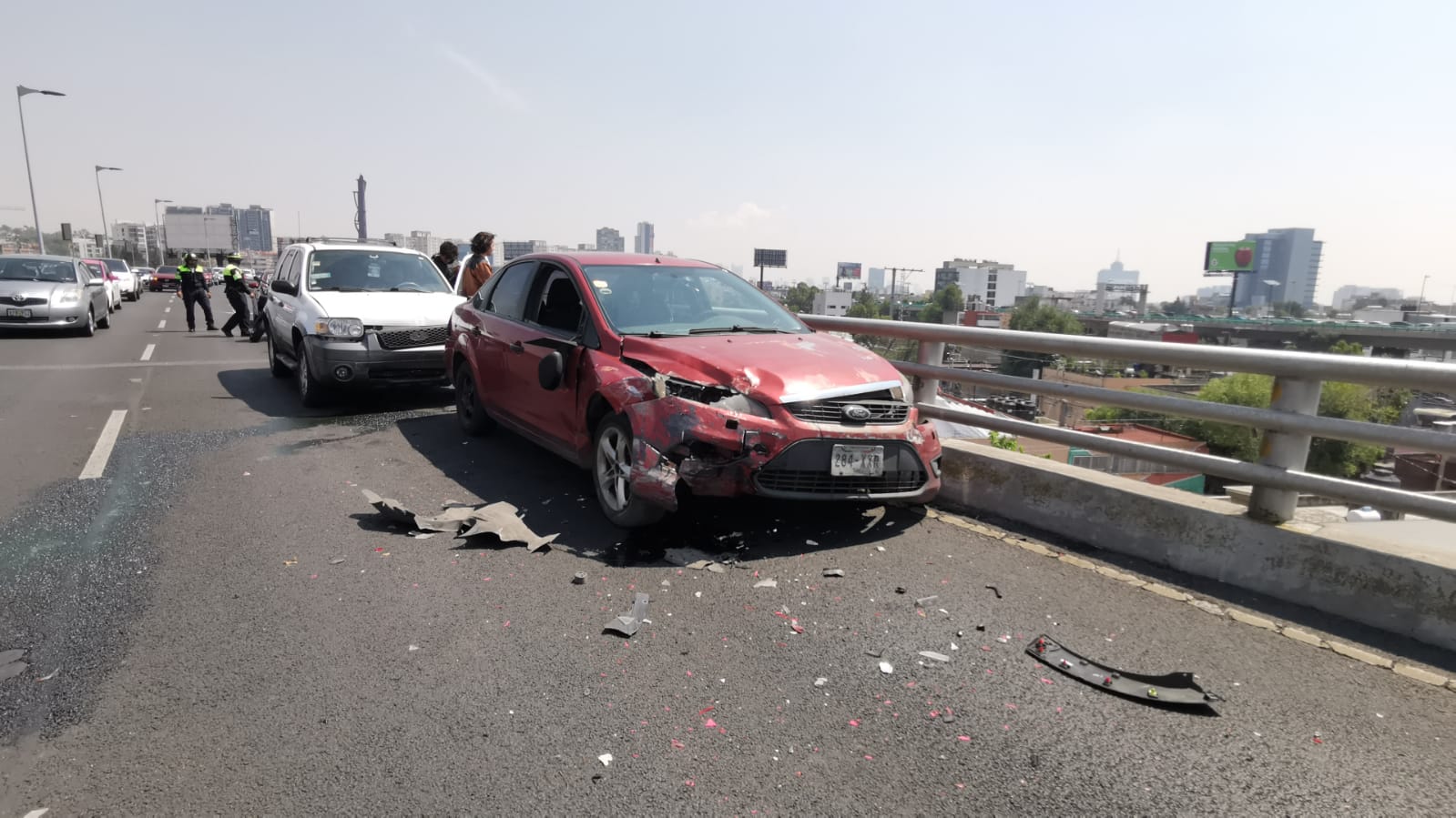 Los automovilistas involucrados esperan el arribo de las compañías de seguro correspondientes.
