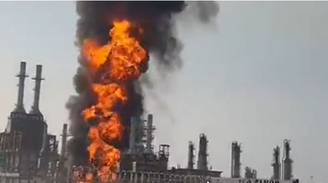 Se registra un fuerte incendio en el interior de la Refinería Ingeniero Antonio Dovalí Jaime, en Salina Cruz, Oaxaca.