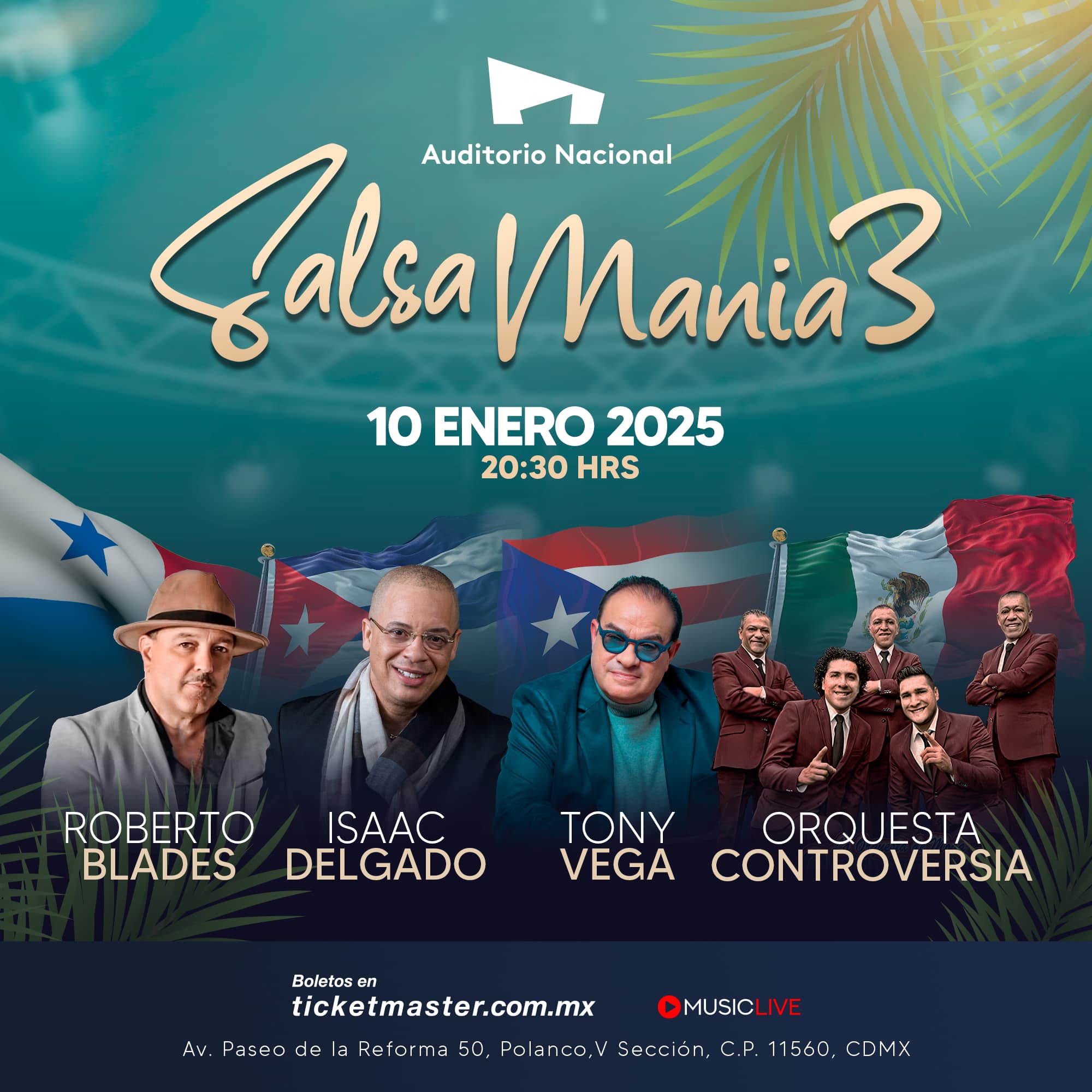 El próximo 10 de enero a las 20:30 horas, el Auditorio Nacional será el escenario de Salsamanía 3, un evento que reunirá a destacados exponentes de la salsa internacional: Roberto Blades, Issac Delgado, Tony Vega y la Orquesta Controversia.
