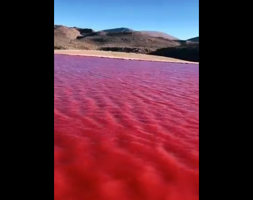 Empero, los científicos han señalado que el evento podría haberse originado por una proliferación de algas rojas, que son los que dan ese fuerte tono púrpura al afluente.