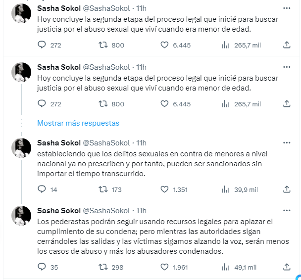 Con este fallo, señaló Sasha, concluye la segunda etapa del proceso legal que inició para buscar justicia por el abuso sexual que vivió cuando era menor de edad.