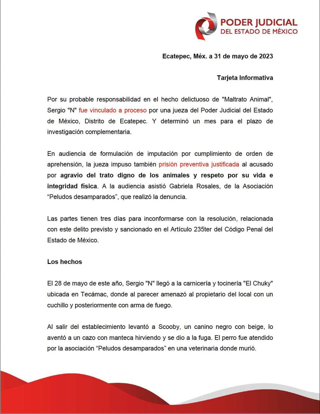 Sobre el imputado que posiblemente arrojó a un perro a un cazo de aceite, informamos que formó parte de esta Institución; cuando la @FiscaliaEdomex giró la orden de aprehensión en su contra, fue suspendido. La #SSC aportó elementos para su localización y colaboró en su detención.