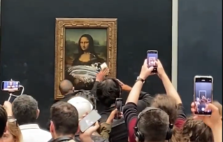 Maybe this is just nuts to me💀but an man dressed as an old lady jumps out of a wheel chair and attempted to smash the bullet proof glass of the Mona Lisa. Then proceeds to smear cake on the glass, and throws roses everywhere all before being tackled by security. 😂??? pic.twitter.com/OFXdx9eWcM