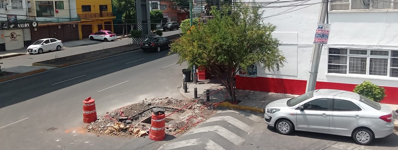 Los trabajadores hicieron una mayor oquedad, sacaron piedras y tierra y sólo colocaron conos de advertencia vial.