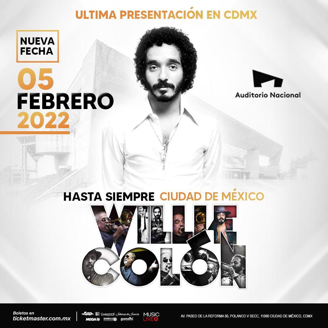 Así, el músico se despide para siempre de los escenarios de la Ciudad de México, toda vez que la altura y otros factores pueden mermar su salud, por lo que será esta la última oportunidad del público capitalino para vivir de cerca el esplendor de una leyenda de la salsa como es Willie, quien además se encuentra celebrando más de 50 años de trayectoria constante, en lo que será una noche cargada de energía y de temas clásicos que forman parte de su extenso repertorio.